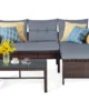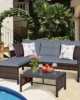 Superior Enhanced Comfort: The furniture is covered with breathable fabric and filled with comfortable sponge cushions that maintain high resilience even under heavy compression. The rattan sectional sofa set creates a therapeutic environment that eases the stress of the day. The ergonomic armrests are designed to perfectly fit your body’s natural curve.