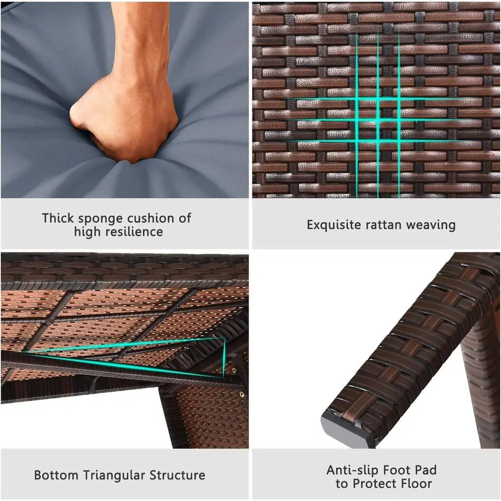 Sturdy & Durable Construction: Crafted from rigid steel with double-woven PE rattan, the weight is evenly distributed across the entire structure, ensuring it won’t warp or crack under sunlight exposure. The reinforced bar under the base is designed for increased load-bearing capacity and offers a tighter, more precise texture.