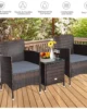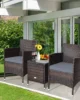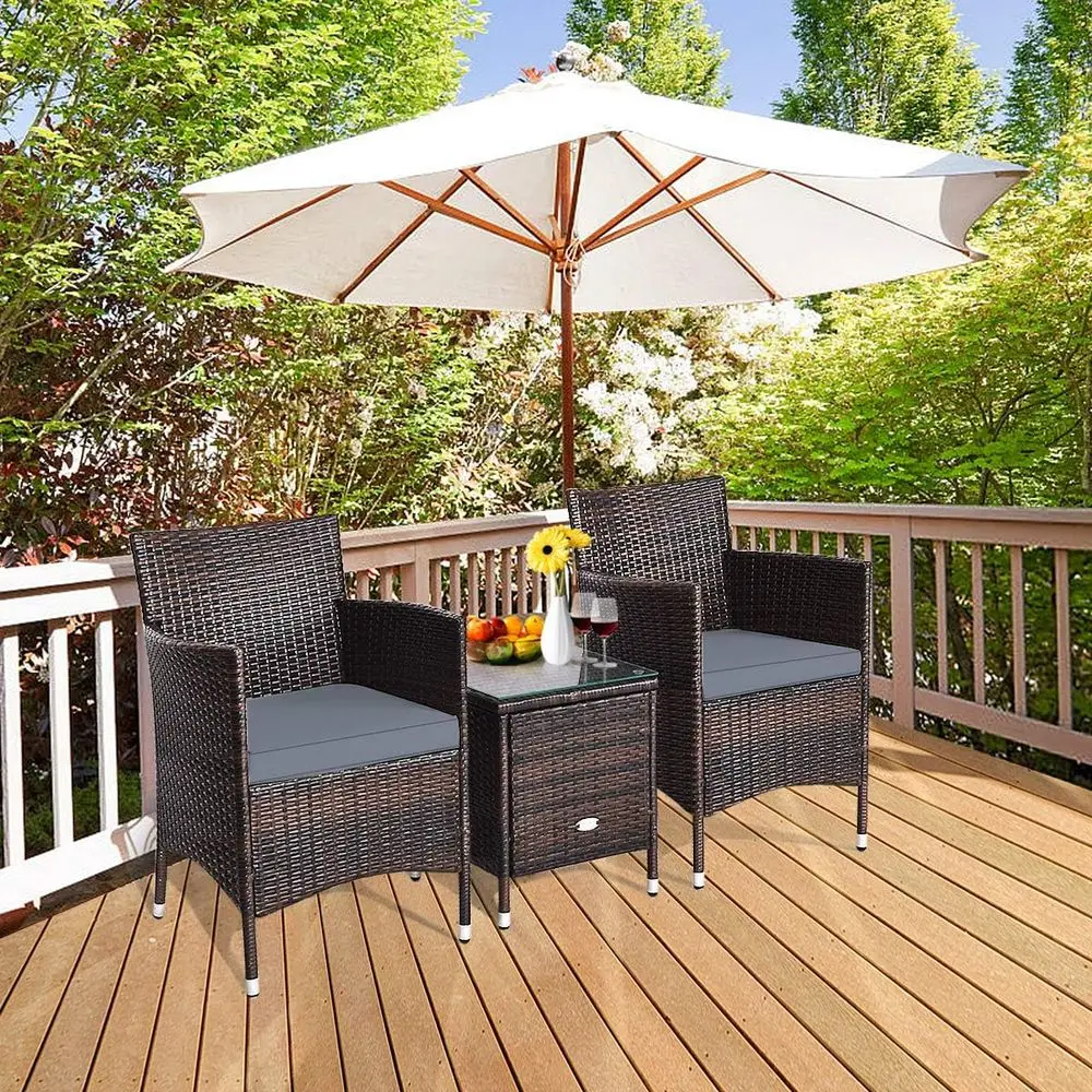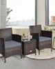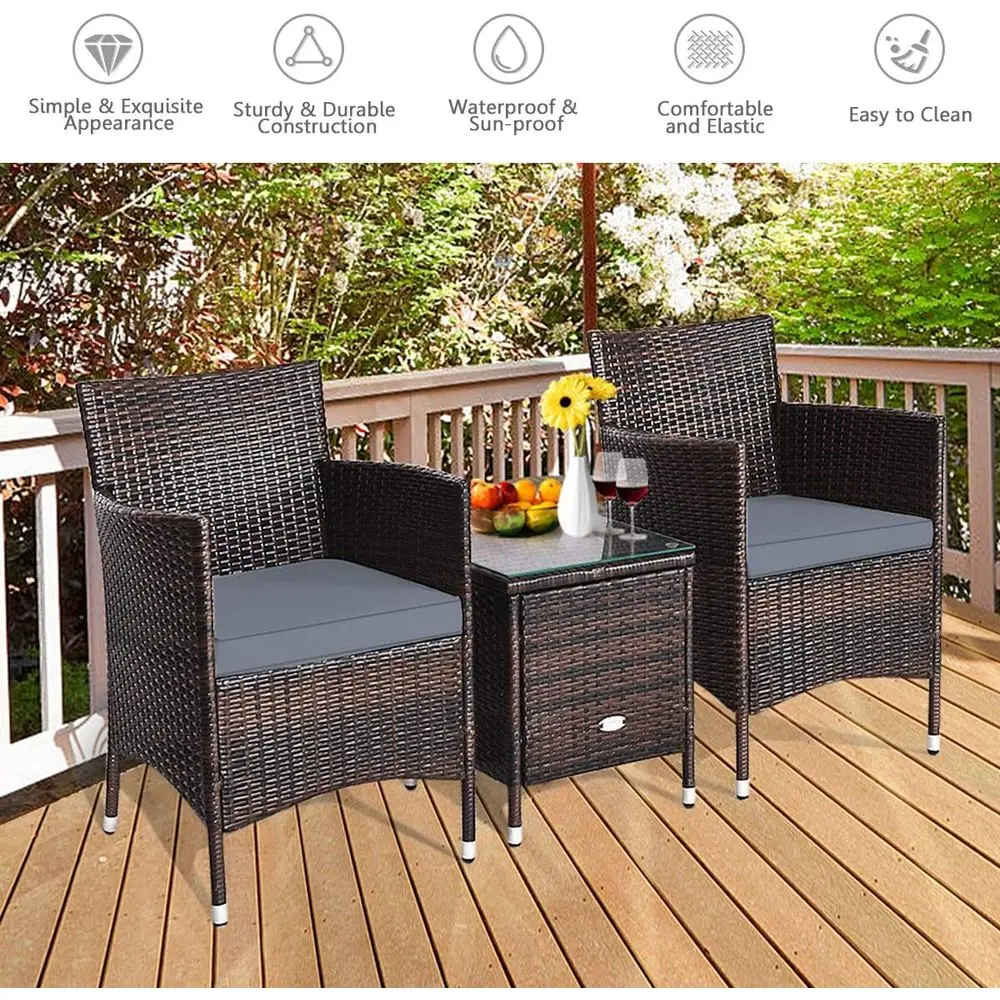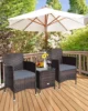 This 3-piece rattan conversation furniture set, consisting of two wicker chairs and a coffee table with a tempered glass top, is perfect for enjoying leisure time in your backyard, porch, garden, poolside, or balcony. It combines elegance with simplicity, creating a relaxing space.