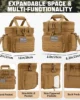 【Adjustable Size and Large Capacity】This tactical insulated cooler bag measures approximately 11.8 x 8.2 x 12.6 inches, with a 5L top compartment that can hold one lunch box or two medium-sized boxes and a 13L bottom compartment that can hold up to 24 cans. Four exterior pockets provide space for utensils, napkins, or small items. Perfect for truck drivers, construction workers, and outdoor enthusiasts.